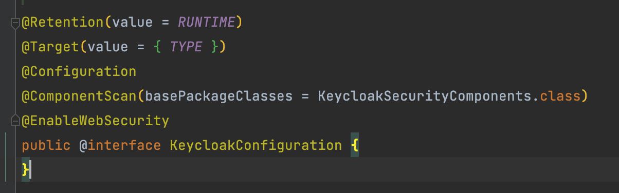@KeycloakConfiguration- Spring Security에서 Keycloak 연동에 필요한 모든 어노테이션을 정의하고 있다.