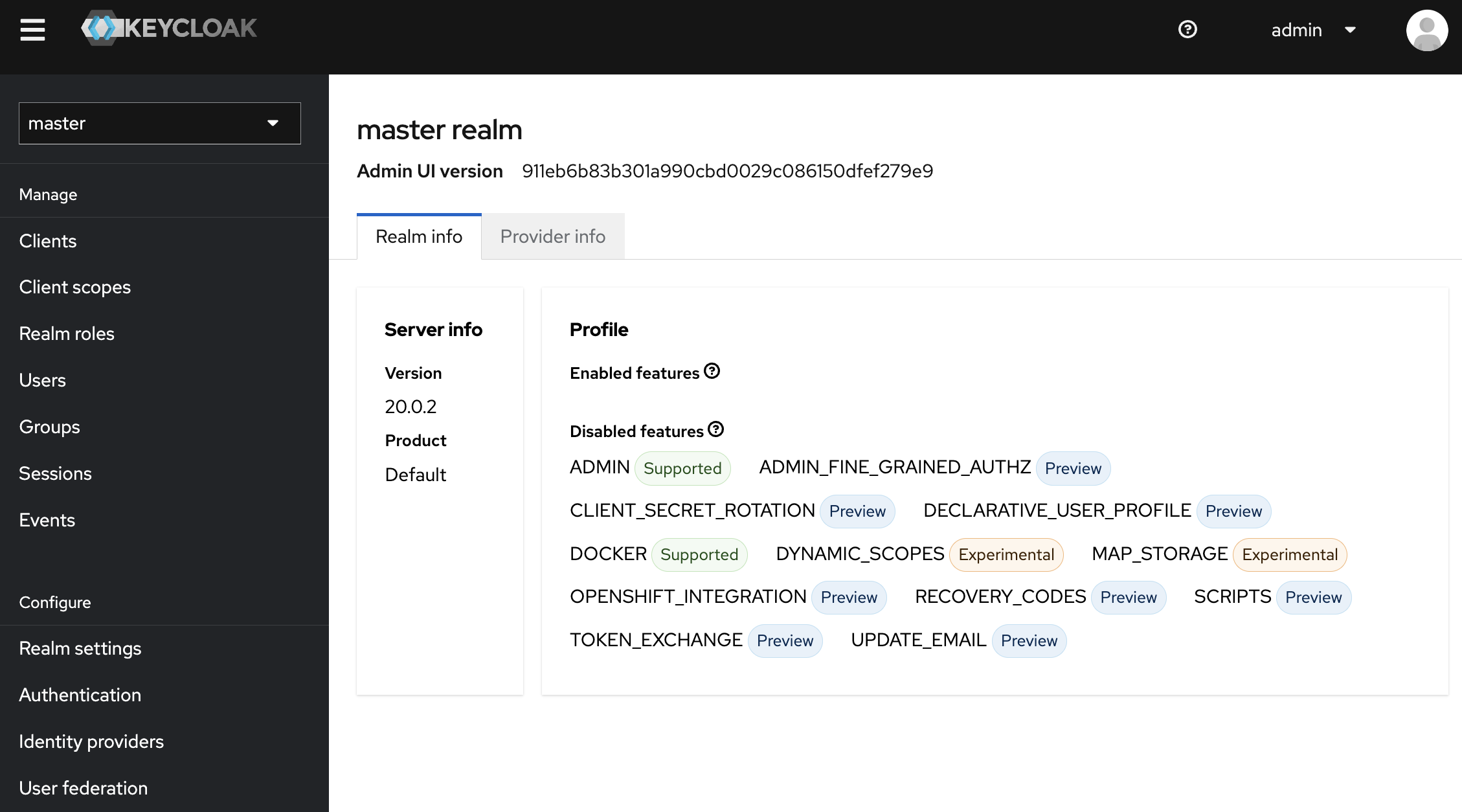 - KEYCLOAK_ADMIN : 관리자 콘솔 로그인을 위한 마스터 계정 아이디